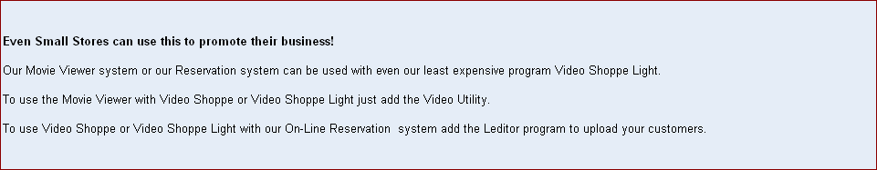 You can compete with big companies! Your customers can reserve movies on line using our On-Line Reservation system. Viewer