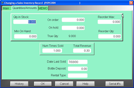 Sales Inventory Quantities/Amounts