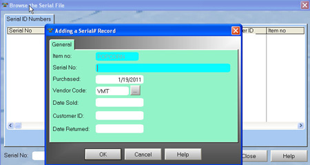 If you choose to use serial numbers on a item, like a dvd or Blue Ray player, the program will let you record the serial number in history when the item is sold.