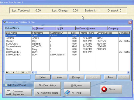 Phone #, or ID. New customers can be added from here. Pressing F3 on the last screen will also bring you to this customer lookup.