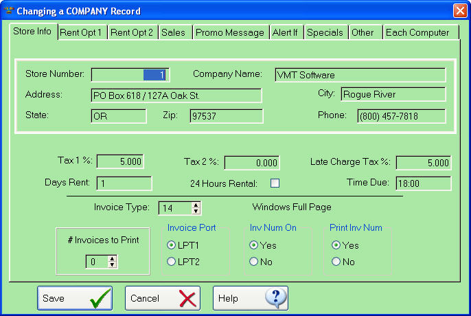 Video Deluxe can handle one or two different taxes. Pick from several invoice types for various kinds of sizes and styles of invoices.