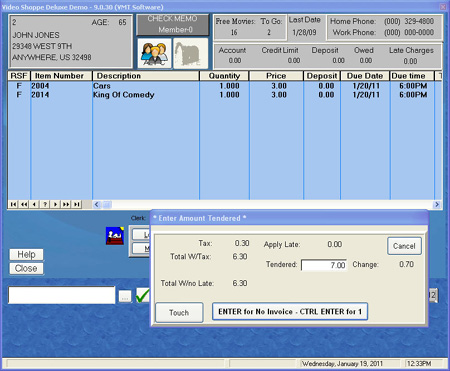 Video Deluxe for Windows shows the taxes, late charges and all the totals right on the screen.