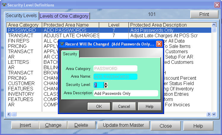 As you can see, it is simple to change a security level. And even if you get an update from us and we add more security areas, our system will not touch your current settings, only add to them.
