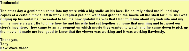 Now your Video Store can have that On-Line presence you always wanted!